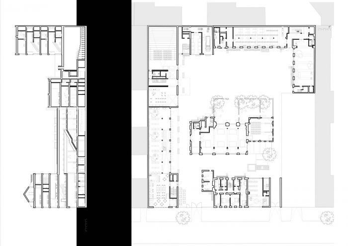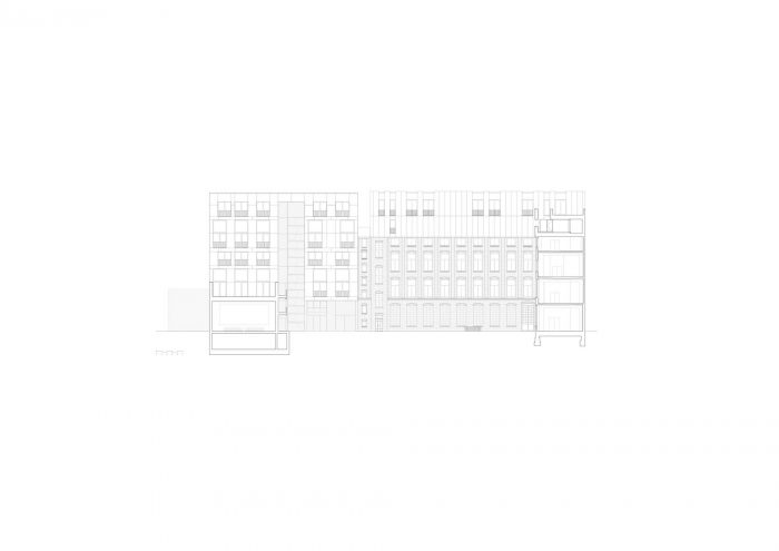 The project involves a series of interventions that began with refitting, using different regeneration strategies, the two most prestigious buildings, restoring and expanding the public housing on the street side, and demolishing the least efficient and less prestigious buildings to construct a new building with various floors and functions.