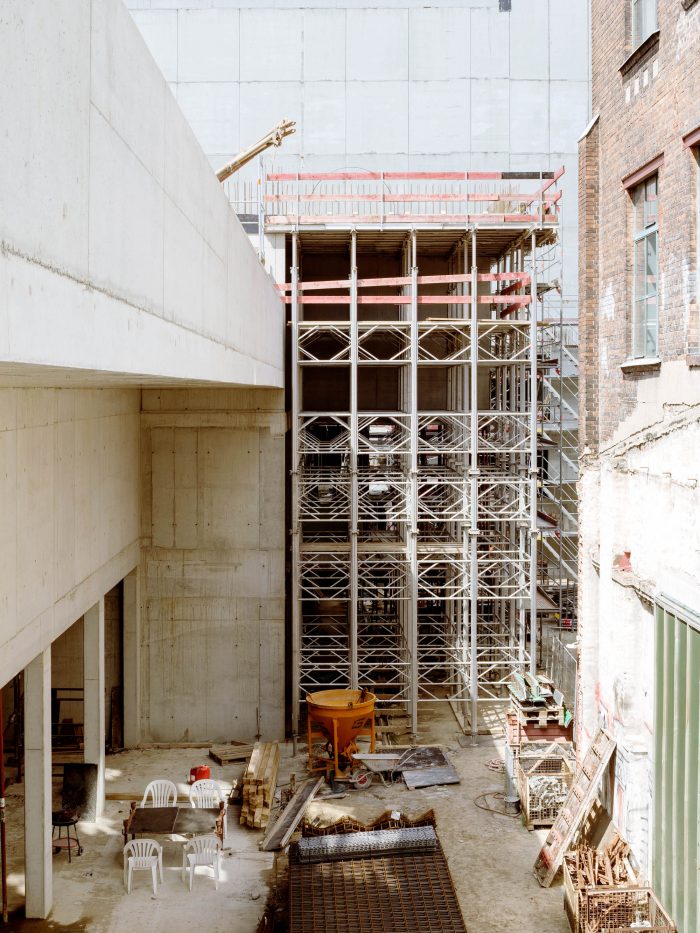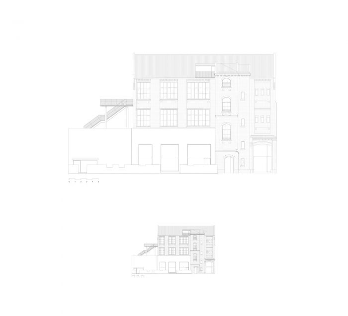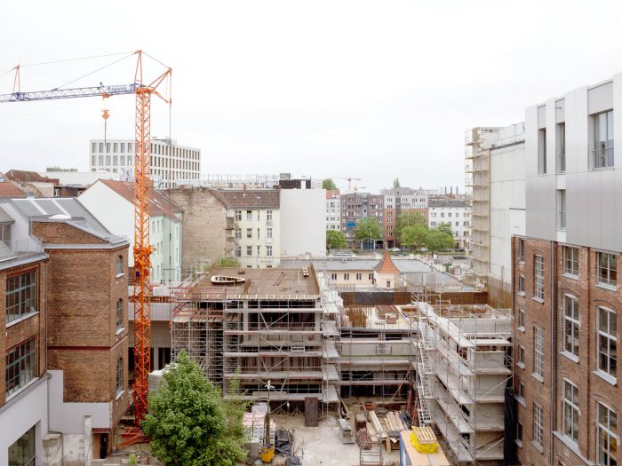 Basic, for example, the retrofitting strategy adopted on Lindower 22. It means an attempt to use the maximum efficiency and linearity to keep the need to alter existing structures to a minimum: all-new input is "standard", in other words, the simplest possible. Useful, because every element or existing system that still works has been salvaged, adding and modernising only where strictly necessary. As of present, the restoration work on the retained sections of Lindower 22 and the streetside building has been completed.
