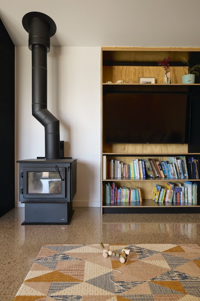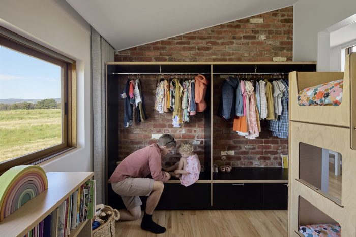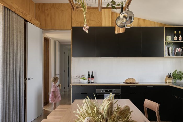 The home is arranged into two primary zones allowing connected family life but also privacy and refuge. The large kitchen spills out onto a vast shaded deck to provide opportunities for entertaining while the kitchen island/dining table links the kitchen, dining, and deck areas to become a focal point for family activity. At the other end of the home sits spacious bedrooms, each with ample storage, natural light, and a breeze, providing a peaceful retreat for rest and relaxation. Bedrooms spill out onto an oversized hallway that provides further storage and play space for the growing family.