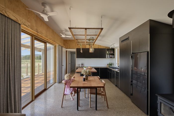 The core driving idea for this project was for our clients to live connected to their site and its surrounding context. As such the home does not take precedence over the surrounding context instead forming a homologous relationship to existing agricultural infrastructure. This was achieved through the formal composition of a simple gable shape with the extraction of elements to create apertures for outdoor life. Material selection wrestled a framework of local availability, bushfire protection, shade, maintenance, and patina.