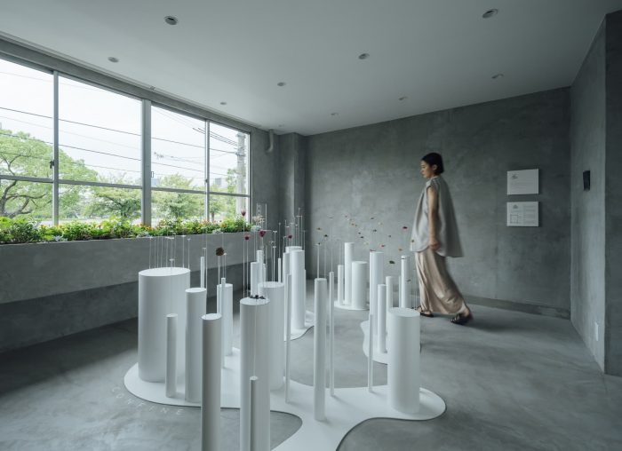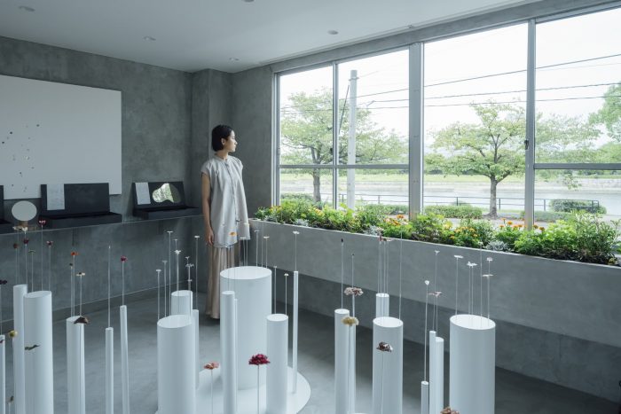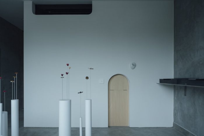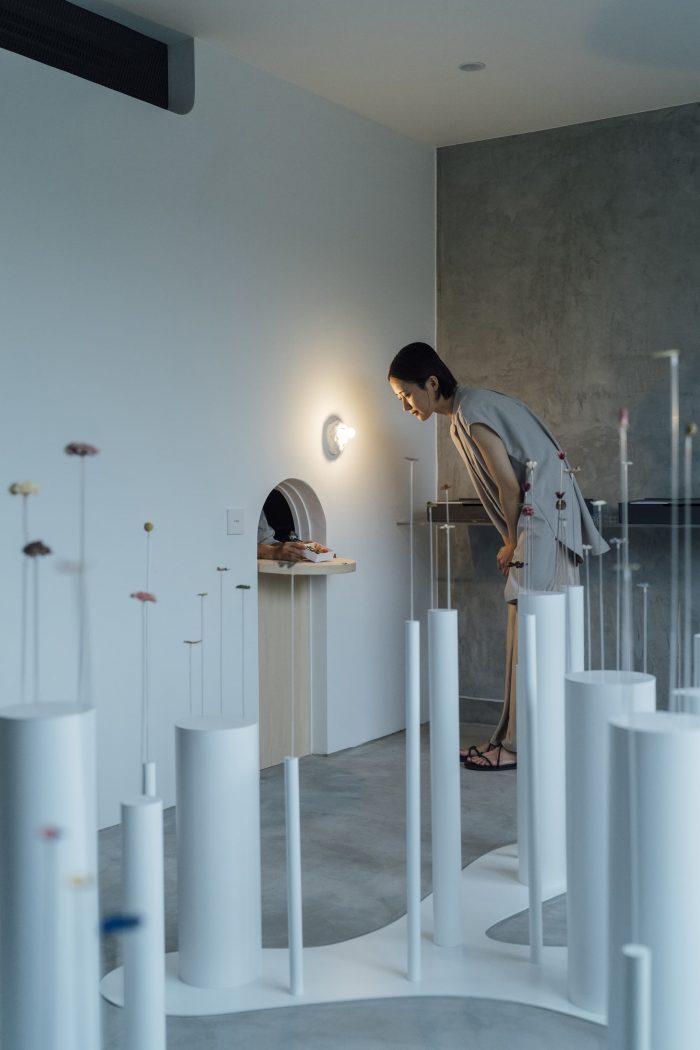 Fixed. To eliminate the connection with the atelier, an opening made by a small arch was made in the wall separating the two spaces. The selected flowers/leaves/fruits and metal fittings are brought into the atelier and joined together. When the stone wall luminaire glows, the door is opened again, and the work is completed only when the person wears it. It takes less than 20 minutes to complete the work. While waiting, we hope that visitors will visit the adjacent river and shrine and spend some peaceful time while preparing to receive the work. The spatial composition of the atelier and the gallery, two functions that are connected in one space, is such that they do not interfere with each other. By creating an attraction-like device in the space, where the value of the brand naturally increases as visitors move, choose, and feel, we believe we have created a new type of passive gallery that was born out of the Corona Disaster.