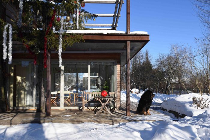 The truth of constructive solutions, the outer metal framework, creating the architectural volume composition, define the overall aesthetic of the home.