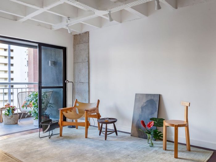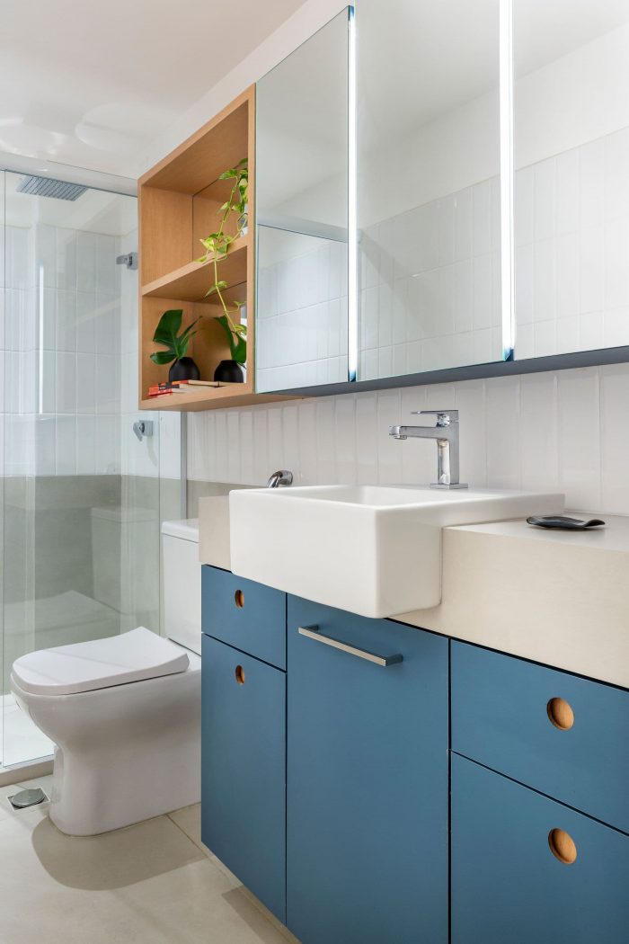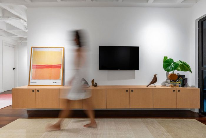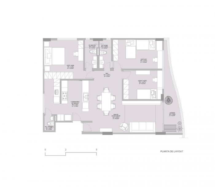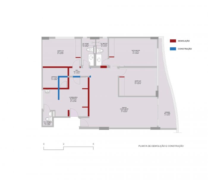 The integration between the living room and the kitchen and the improvement of ventilation and lighting in those environments were the guidelines for this project. Some walls were thus demolished, which also allowed for a larger couple’s bedroom.