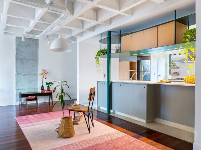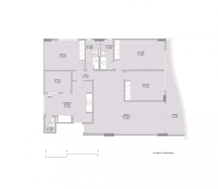 客厅和厨房之间的整合以及这些环境中通风和照明的改善是这个项目的指导方针。因此,一些墙被拆除,这也使得一个更大的夫妻卧室成为可能。