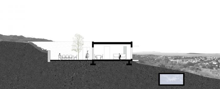 The volume of the house develops toward the view and protects against a low stone wall forming a view to the west. On the one hand, they are firmly hooked to the ground and on the other, they seem to float toward the view and the natural relief. The same pattern is followed by the intermediate and front yards – balconies that aim at the sea.