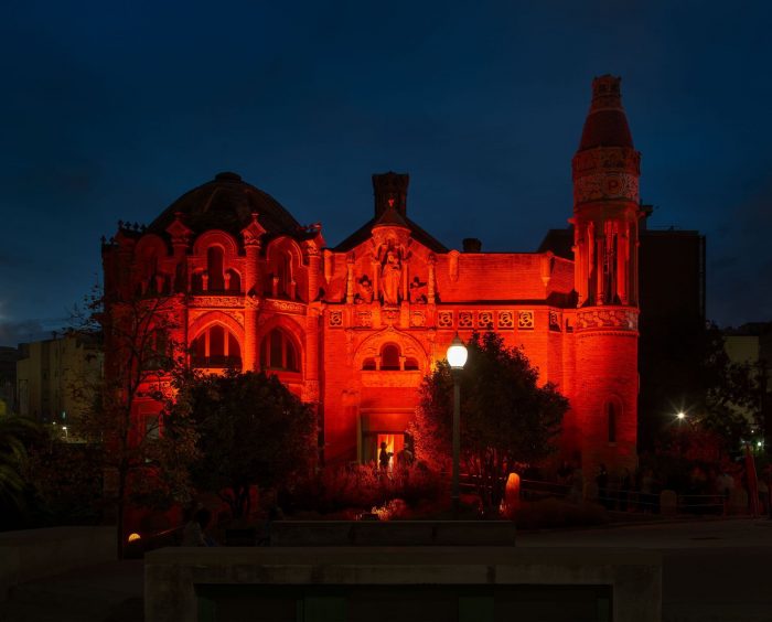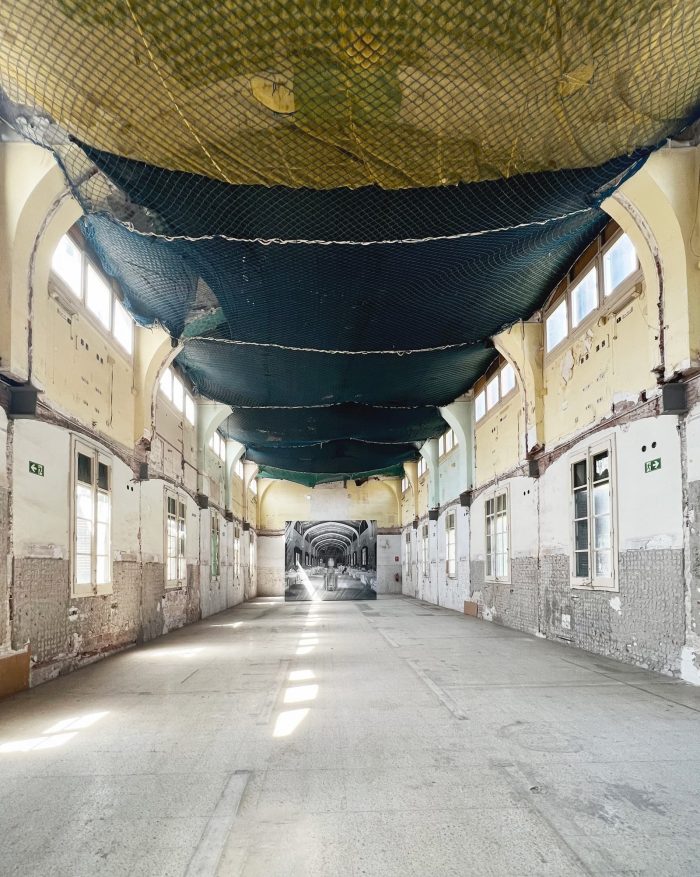 The project emerged from the desire to present the new collection of the fashion brand LR3, merging virtual and digital reality with the physical one. The approach consists of creating an ephemeral space located inside the pavilion of Nuestra Señora del Carme, in the modernist complex of Sant Pau, designed by the architect Domènech i Montaner. The access to the pavilion is from the north side of the old hospital, and naked, pixelated avatars serve as a lure to the experience.