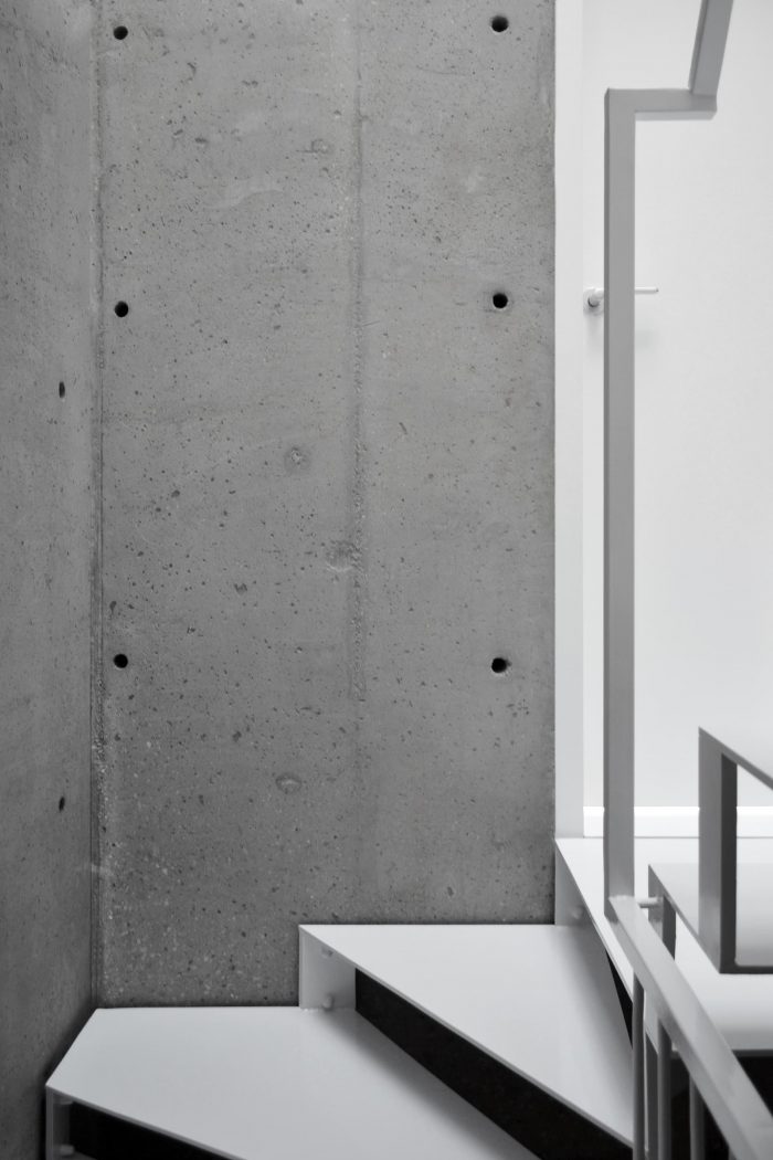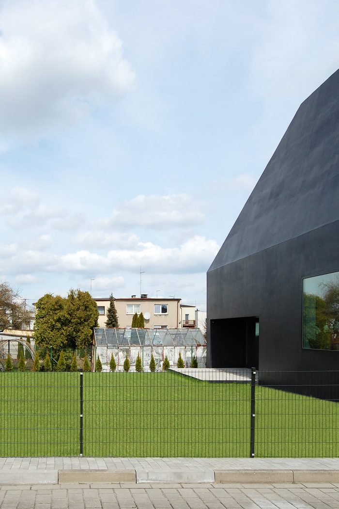 由于采用了外部喷涂的聚氨酯层,该建筑的同质化外观得以实现。这种技术通常用于工业建筑,在波兰首次以这种方式使用。拟建的房屋由两个 "面 "组成:从外面看是黑暗的、无法进入的,从里面看是明亮的、宽敞的。对比的目的。