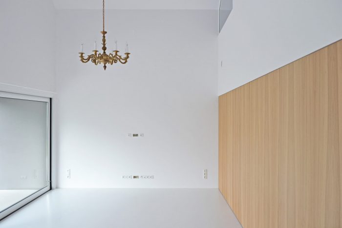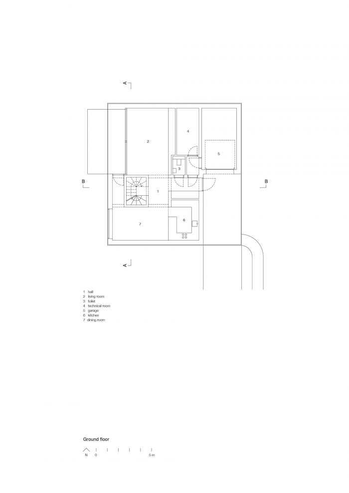 The limited site area, as well as the south side access, were the two main factors which determined the final house position within the plot. Placing the building maximally close to 3 of the site boundaries allowed to enlarge the garden as much as possible and therefore maximize the limited development potential of the site.