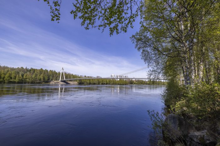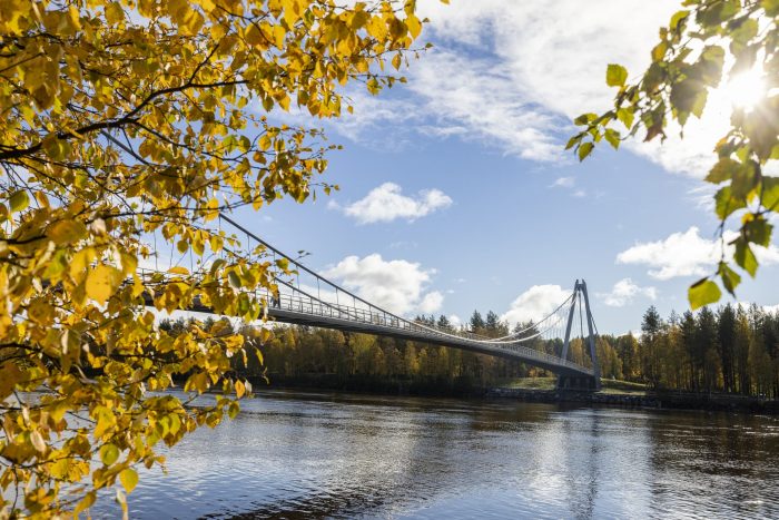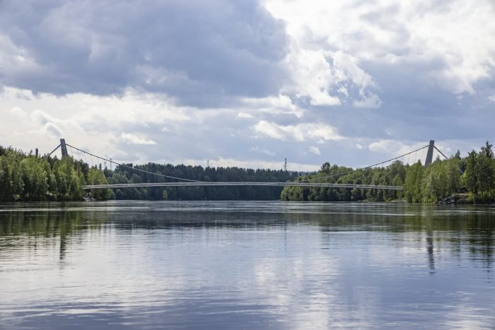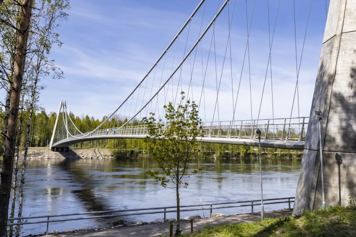 The footbridge, which is situated in the city’s recreation area, connects the river’s left bank with the island of Bölesholmarna and links up to a small bridge bridging the arm of the river. The footbridge connects pedestrian and cyclist trails situated along both river's banks; it also carries electrical and communication cables.