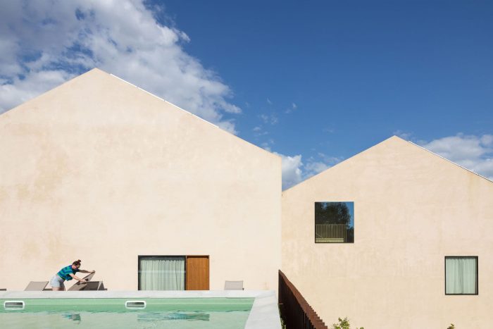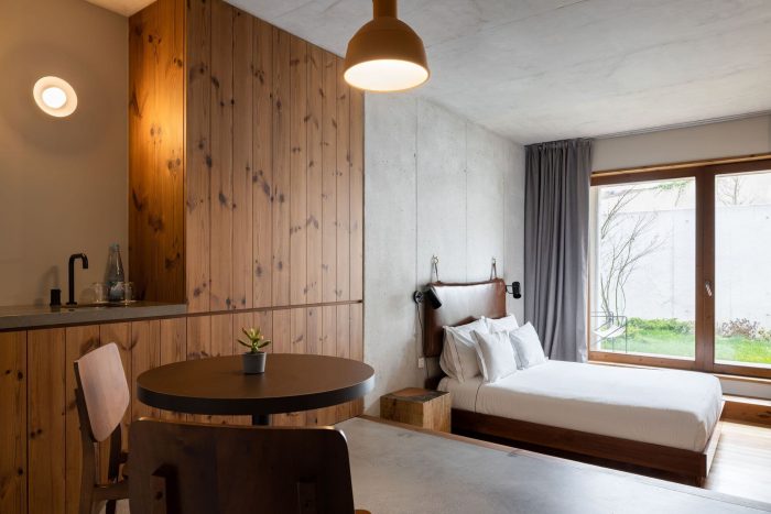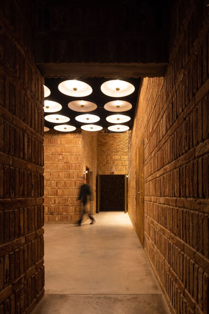 Outside, the use of lime mortar, wood, and solid brick, all already used in interior spaces, creates a sense of continuity There are different units of rooms and Arquitectos Aliados were responsible for the interior design package including FF&E (furniture/lighting design).