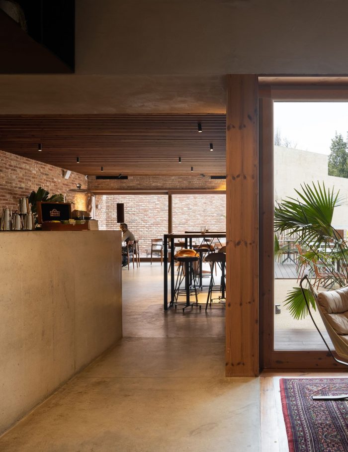 项目组力图保持设计的简洁,以整体语言为基础,使用最少的材料。在内部,反复使用混凝土(裸露的石板和地板)、石灰砂浆(在墙壁上)与天然木材细节(开口和配件)形成对比,以及实心砖(在墙壁的一些特殊区域)。