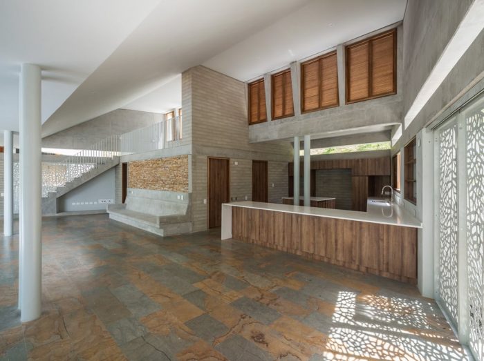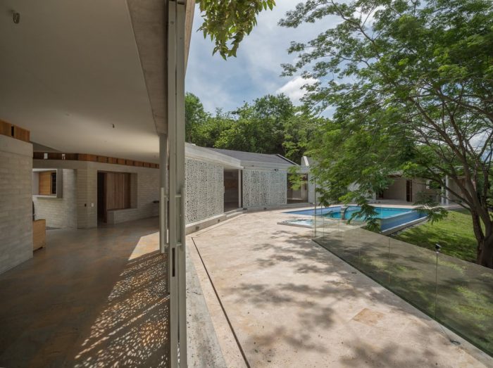 In this case, as in the traditional architecture of the region, the corridor acts as an open, elongated shadow area to hang hammocks and watch the distant landscape; To control the sun and to close this area in some cases, large sliding metal doors were designed with a pattern of 60% perforation, allowing natural ventilation even at times when the space is not open. The house has been located so that the corridor remains shaded almost all year.