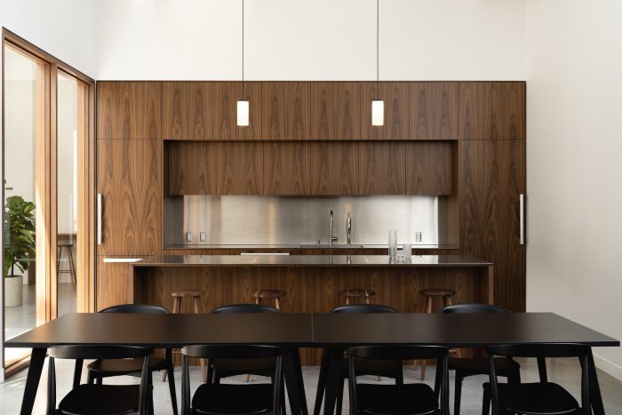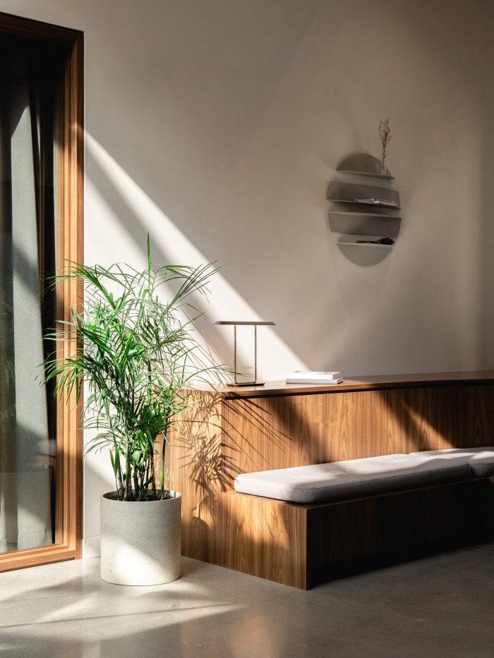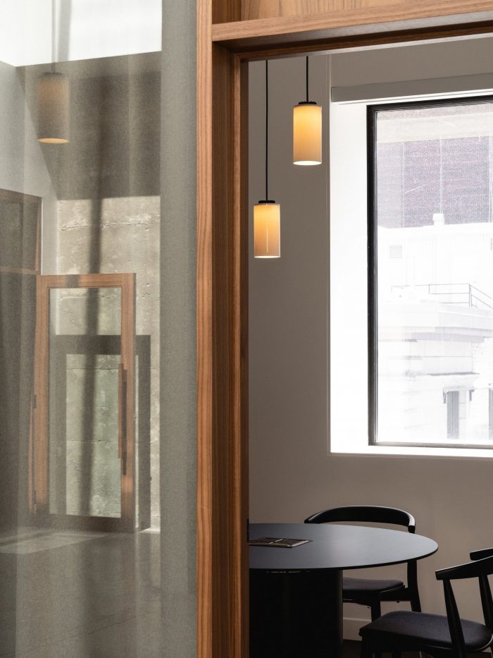 The program unfolds through two wings hosting a public client area, and a more private section for employees. This distribution allows the team to have greater intimacy and freedom to encourage feelings of relaxation and belonging. The choice of lighter tones, sober finishes, and lounge furniture accentuates the relaxed atmosphere. Developing a hybrid concept between open-plan offices and the traditional model of closed conference rooms, L'Abri designs flexible layouts that optimize square footage, while promoting teamwork and productivity.