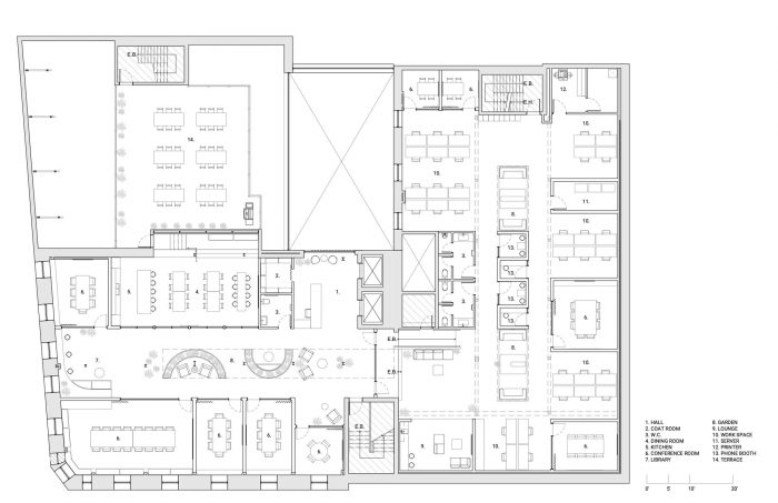 L'Abri和Construction Modulor的团队遵循其设计-建造方法,从项目的最初阶段就开始参与,为这家欧洲咨询公司的蒙特利尔新办公室寻找理想的地点。当远程办公的热潮促使许多公司减少他们的工作区域时,Accuracy做出了大胆的选择,搬入一个更大的空间。建筑师根据该公司的运营情况采用分析方法,提出了一个基于灵活性、舒适性和创建公共空间的新布局模式。