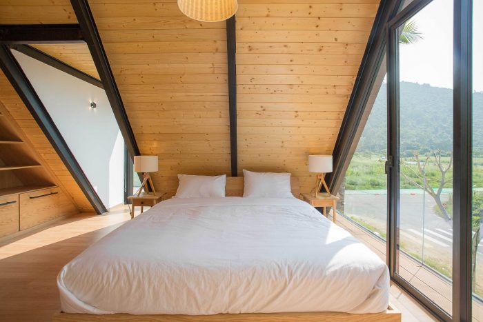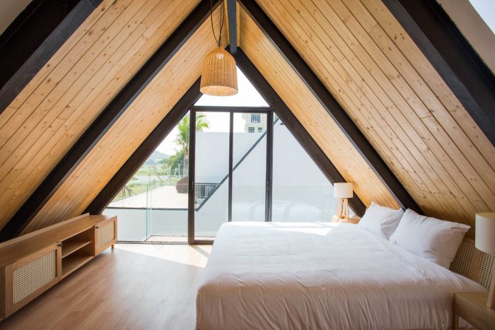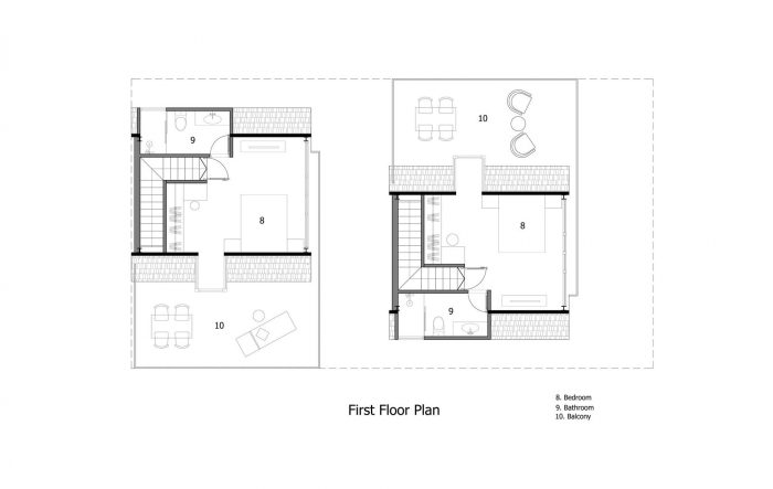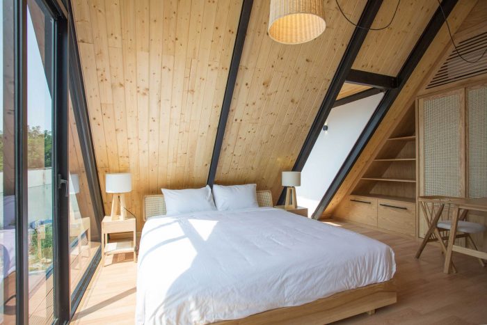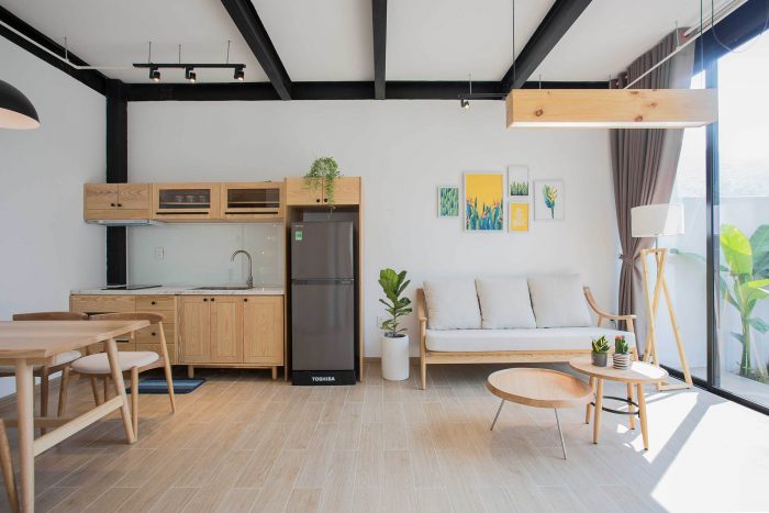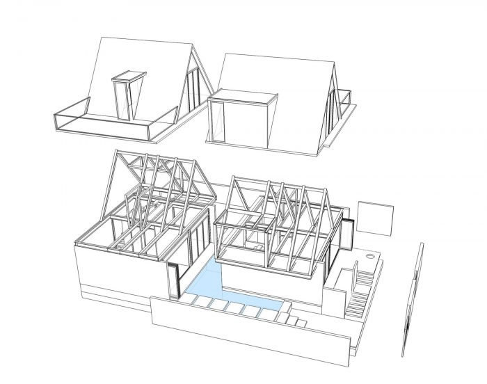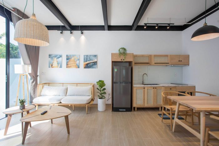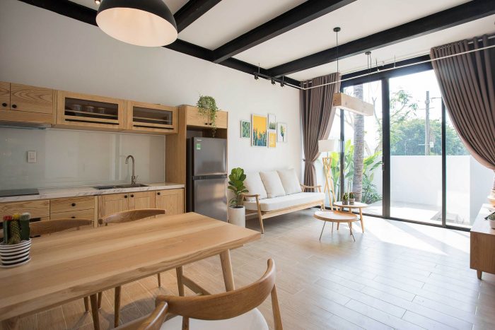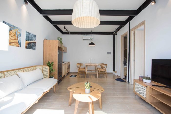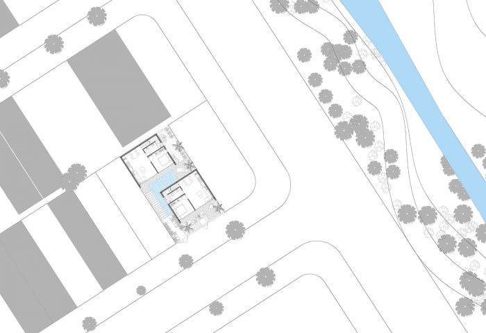 Therefore, I have proposed them to build two separate small houses. One will be ready for them whenever they visit Viet Nam and one will be rented out as around 2000 USD per month. The couple agrees right away as the proposal is reasonable and they will also have a small income without interfering with their daily routine. From there the detailed plan of the house was created. I divided the land into two parts, one in the front and one in the back. The front part is the house for rent with two bedrooms, fully equipped living room and a kitchen. The other part is the house, which they will use every time they come back to Vietnam; besides the minimal amenities as minimalist style, this house also has a small pool as a relaxing space.