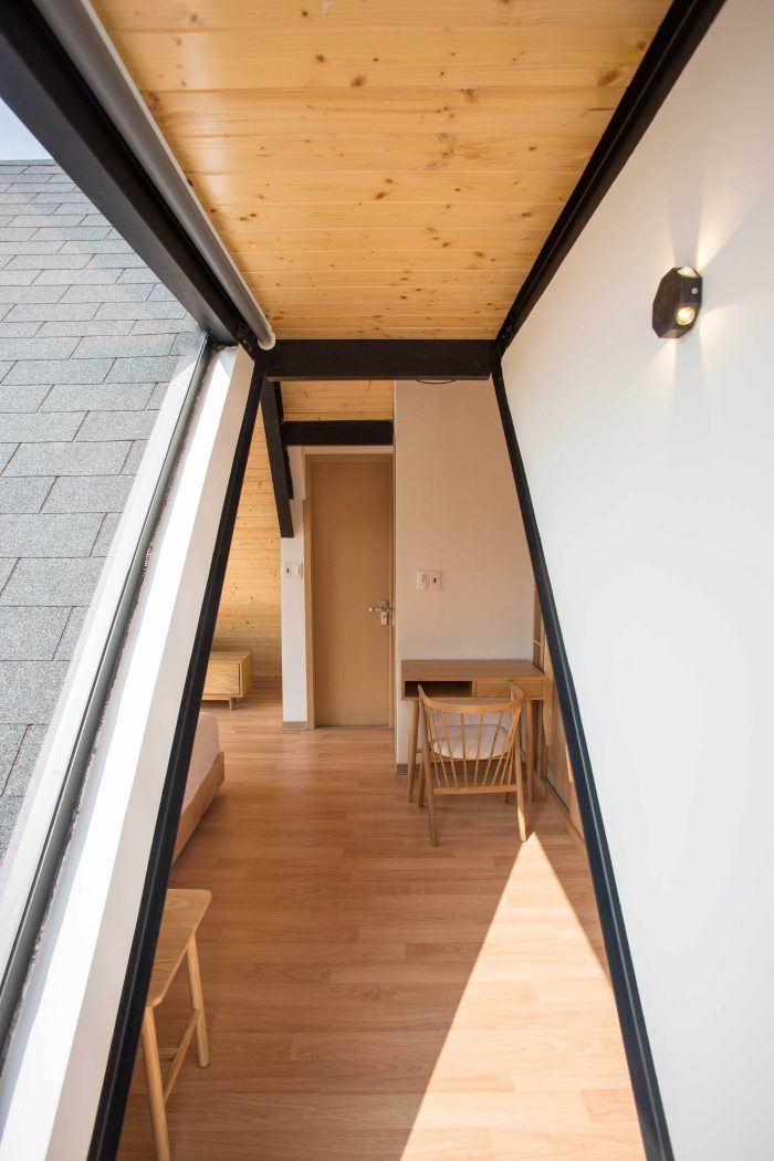 The main structure of the house is entirely steel and attic, which is very special for Vietnamese. Due to the minds of the majority, steel buildings are not for housing but factories and coffee shops. An attic bedroom is also considered as an abnormality. However, in the process of building the investors as well as many people feel very excited because of the project's differences. On the first floor, there are a living room, a kitchen, a bedroom, and a toilet. The second floor has a bedroom, an attic, a toilet and an extra spacious playground for them to relax, read and dining. As I expected, a tenant is willing to rent this house even it is in the construction process. The investor is very happy that we are on the right track.