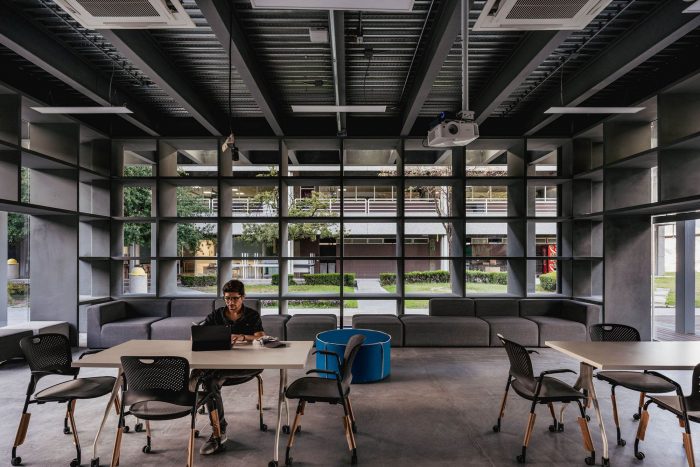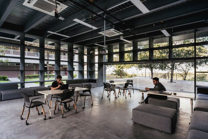 We seek to achieve a transparent building that allows a view of its interior. The goal is to show the whole process, from learning to use each tool, conceptualizing parts, and materializing them. Makerspace transforms this way to become a display for those who walk through the high school’s public spaces.