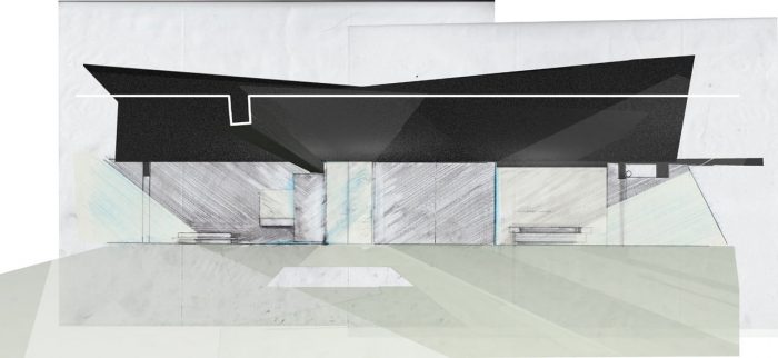 It was decided that the flow through this rectangular space should not be blocked by the addition of interior or exterior walls. The openings at each end would remain clear from edge to edge through the use of large glass panes. The interior space was kept completely open plan, with no dividing walls, in order to enhance the expansive nature of the space.