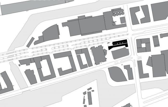 The old freight depot west of Malmö Central Station was no more than a roofless shell when two siblings, Nina Totté Karyd and Martin Karyd, bought it in order to create a market hall. In 2013 Wingårdh Architects was commissioned to transform the ruin into a market hall for about twenty vendors and restaurateurs. The initial intention was to add a similar volume onto the existing oblong brick building, but the plans changed when several layers of underground utilities were discovered on the site, reducing the buildable area of the lot.