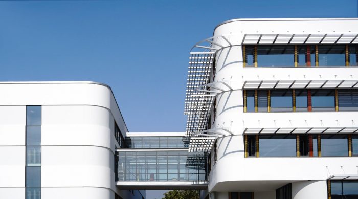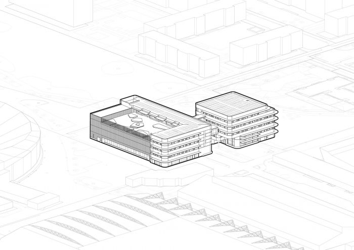 学校位于体育场区,因其60年代的标志性白色混凝土体育建筑而闻名。新建筑的设计是基于它所容纳的活动,以及该地区和周围现有的建筑。学校的建筑散发着活力和活动,同时也给人以友好的印象。该建筑采用白色混凝土外墙和圆角设计,与历史相联系,同时有助于发展该地区的独特性。