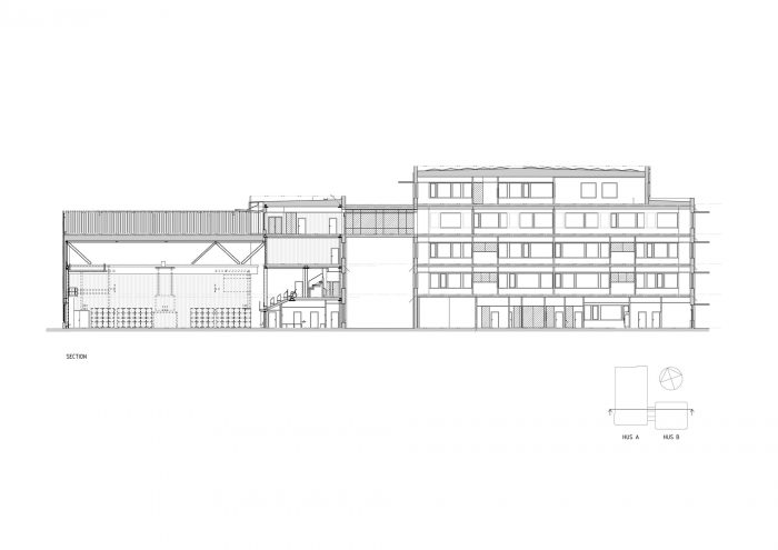 该项目的挑战是在一个相对较小的场地上为540名学生创建一所学校。这也包括满足人行道和自行车道的要求,让消防车可以直接通过该地块,以及保护许多现有的树木,由于地下设施的限制,以及对一个有凝聚力的学校庭院的要求。这导致了一所五层楼的学校被分成两座建筑,以便行人和自行车道可以穿过该地块。这两座建筑在第三和第四层用玻璃桥连接。学校的部分操场被放置在第四层的体育馆屋顶上。