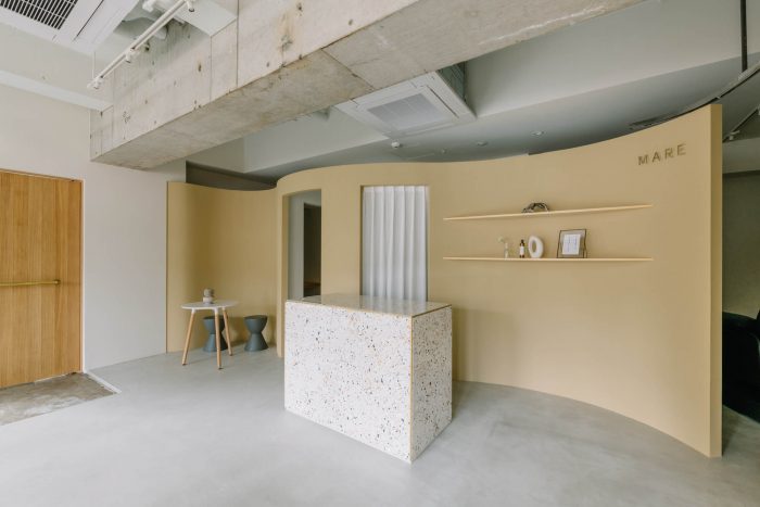 这个项目是为一家名为MARE eye design的美睫沙龙设计的。它位于一栋大楼的二楼,面对京都市中心的一个公园。公园是很多人的休闲场所,每年都有美丽的樱花盛开。