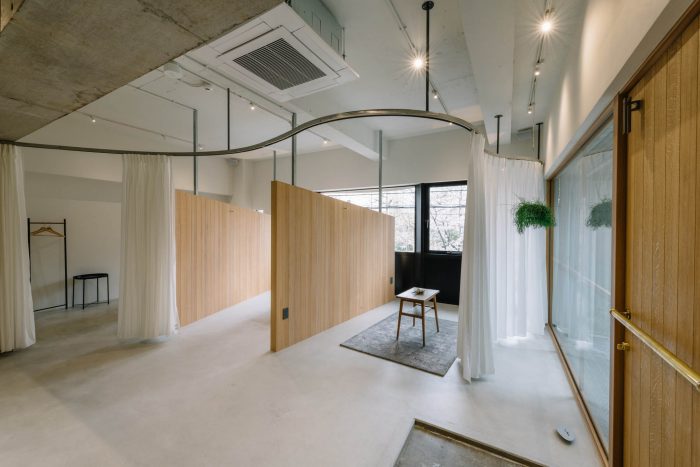The required functions include a reception area, four treatment rooms, a make-up room for after-surgery use, and other facilities (toilets and offices). These functions were arranged freely in the planned building while ensuring visibility to the park, and another space was created to connect these functions in a single stroke.