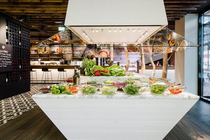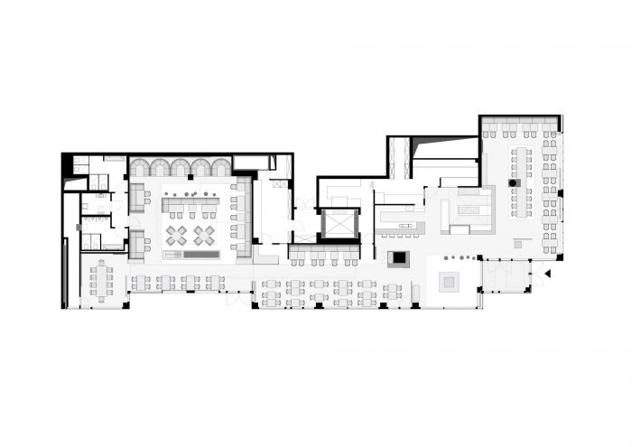The new spatial concept has been implemented for the first time in the Berlin branch in ‘The Q’ mall, next to Berlin’s historic Gendarmenmarkt. The existing restaurant has been expanded to encompass a former post office branch next door, giving the new flagship restaurant almost 580 m² of floor space.