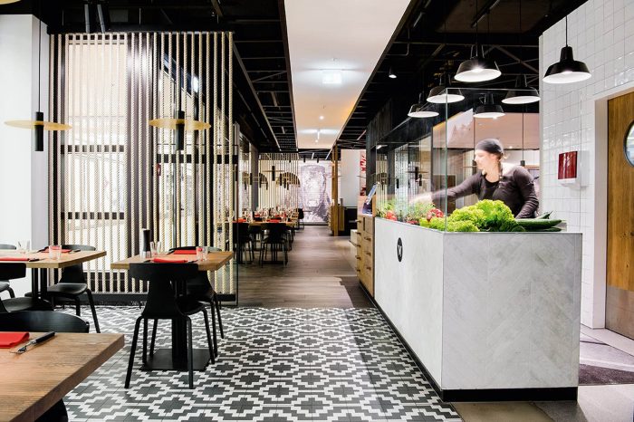 German steakhouse chain Maredo was founded in 1978. With around 50 restaurants nationwide, it is Germany’s market-leader in the steakhouse sector. To remain competitive and cash in on the prevailing steak and burger hype, Maredo opted for a radical interior makeover and profile enhancement.