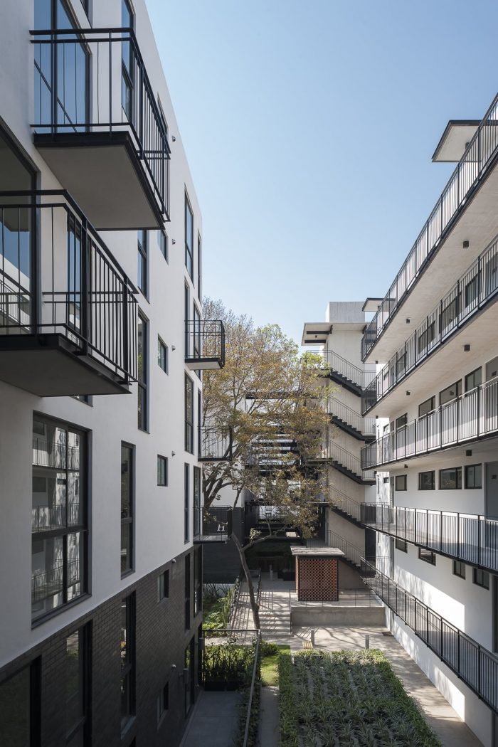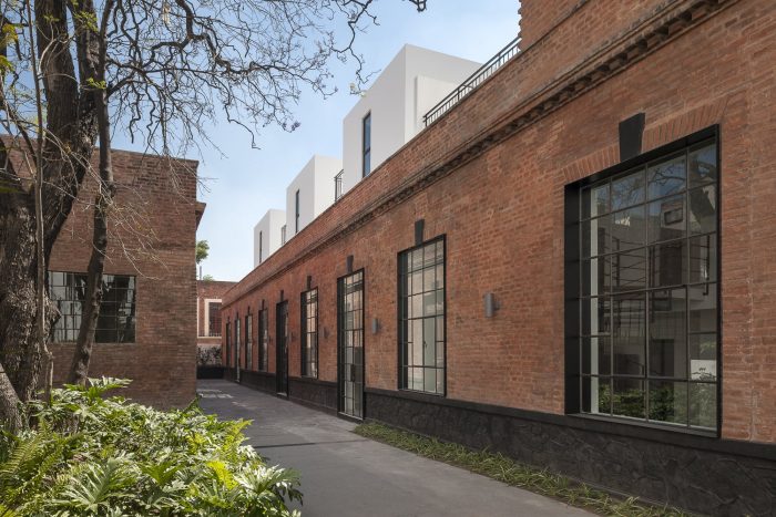 With the same industrial and neighborhood essence of the historic building, the dwellings not only re-densifies the center of the city but also recycles the original structures leaving an access on both sides of the property and incorporating circulations, plazas, children's games and garden areas. The large main industrial building was used to distribute the low buildings with apartments from 65 to 86 square meters around patios, gardens and terraces.