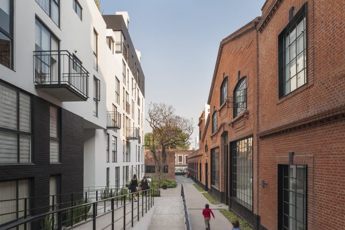 We uncovered the layers of history of the old La Cubana Chocolate Factory that was founded in 1872 and worked until 2004 in the Santa María la Ribera neighborhood. In this way, we rehabilitate and integrate a housing dynamic with mixed uses and changes in scale. Because of its location and its historical background, this colony has developed neighborhood traditions and uses around a Moorish kiosk.