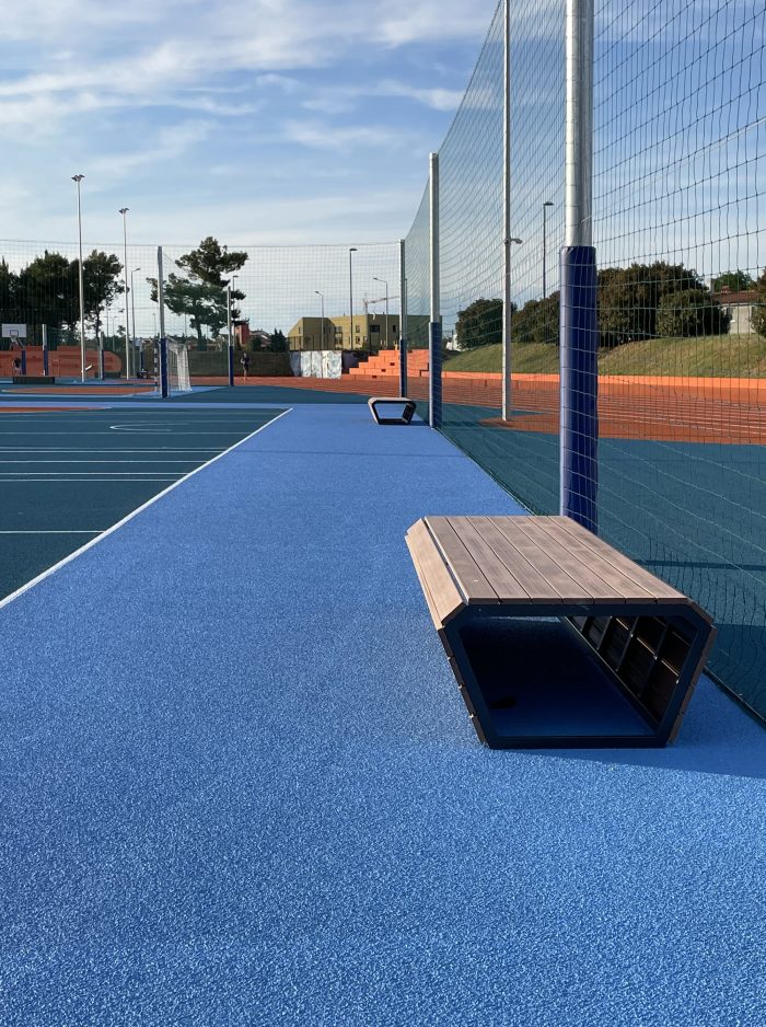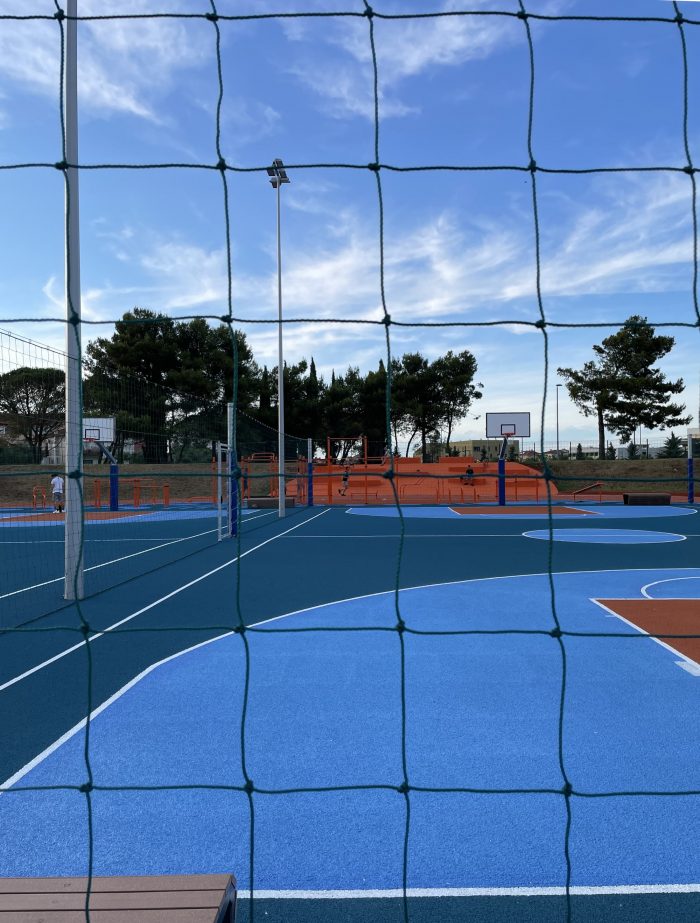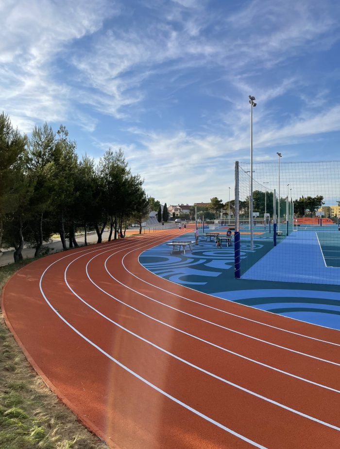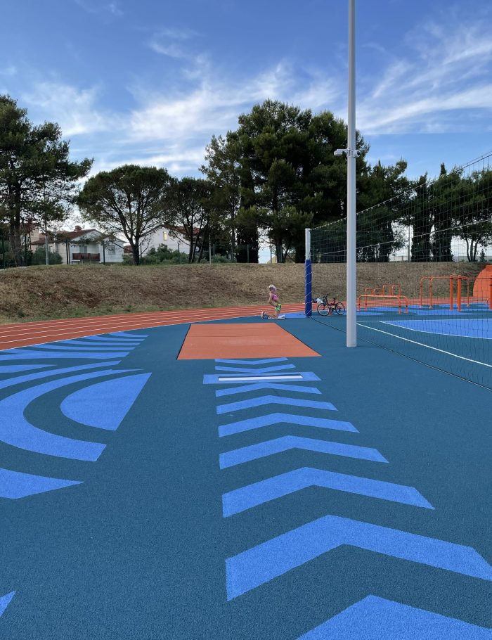 This year, in Umag, the project for the sports field next to the Elementary School of „Marija i Lina“ was completed in Umag, which turned the previously abandoned and unused school sports field into a gathering place for citizens, athletes and children. The playground was designed by architect Nenad Marić, and the investor was the Municipality of Umag. The project consisted of the reconstruction of the existing, neglected, playground area next to the elementary school in Umag. The project task included the reconstruction of the playground space and the transformation of the surrounding environment.