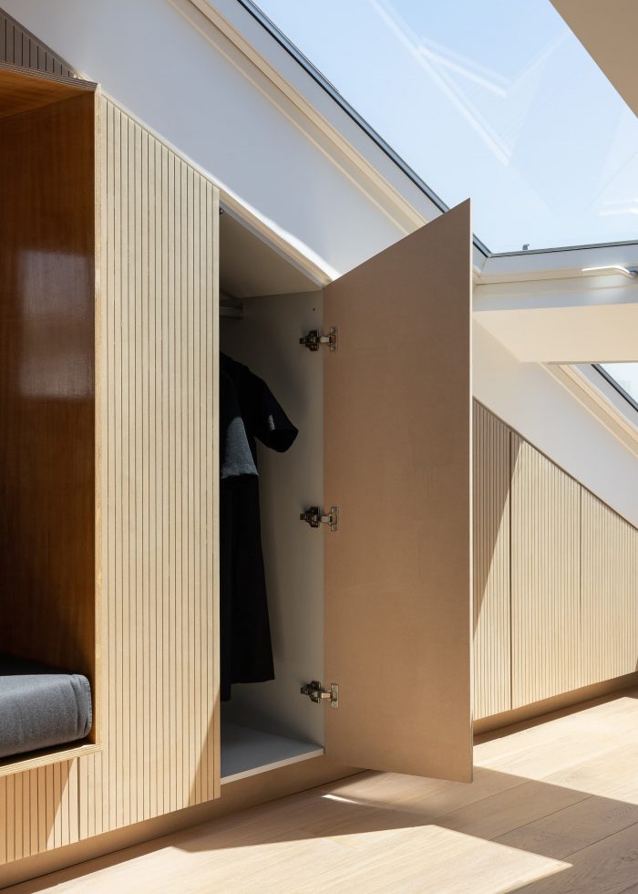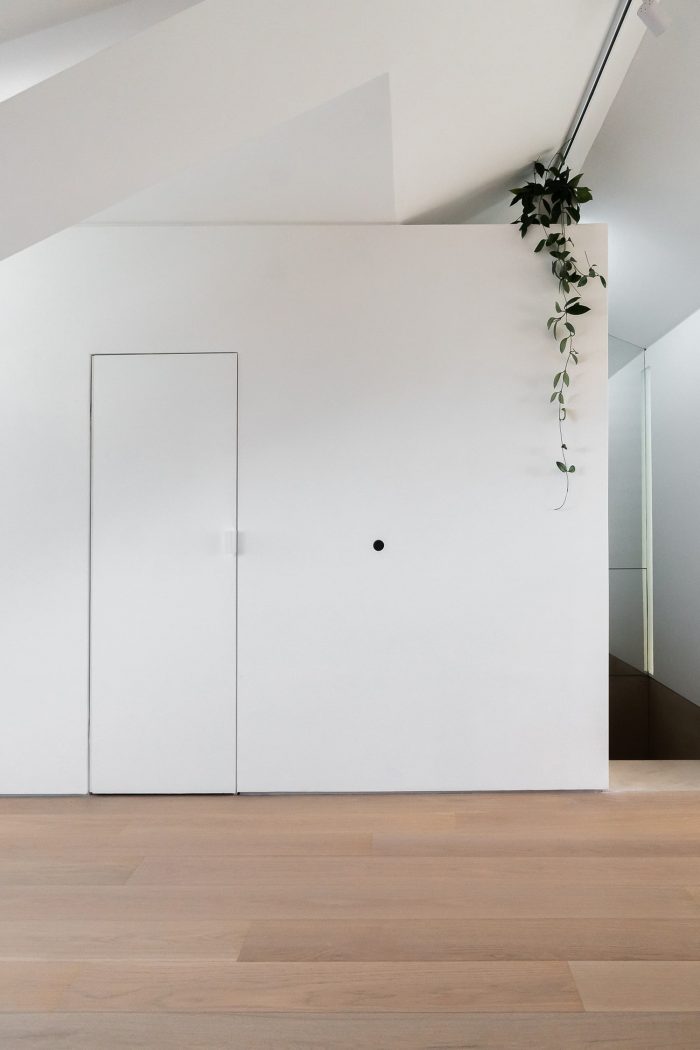 我们通过引入4个新的天窗和两个雨棚窗来照亮空间,为空间提供了大量的透明度。在不可能引入直接光线的地方,我们提出了小的玻璃条,带来了间接光线,在这些室内创造了一个特殊的氛围。此外,大型的、神秘的镜子使公寓内的空间感和亮度倍增。