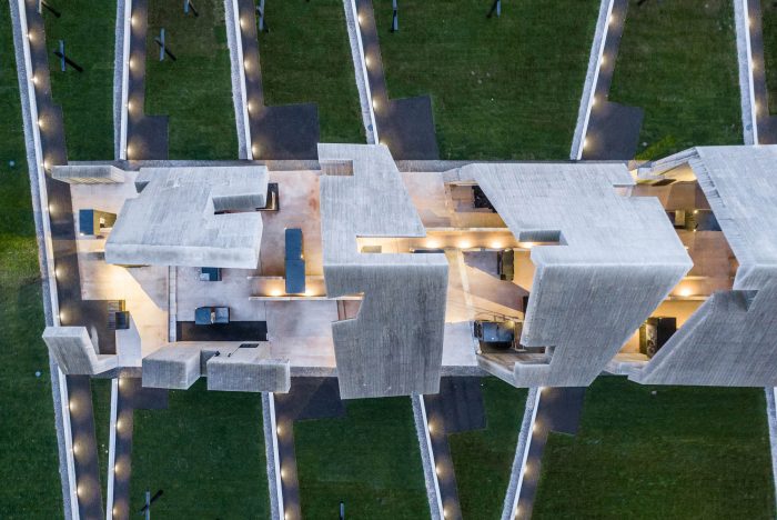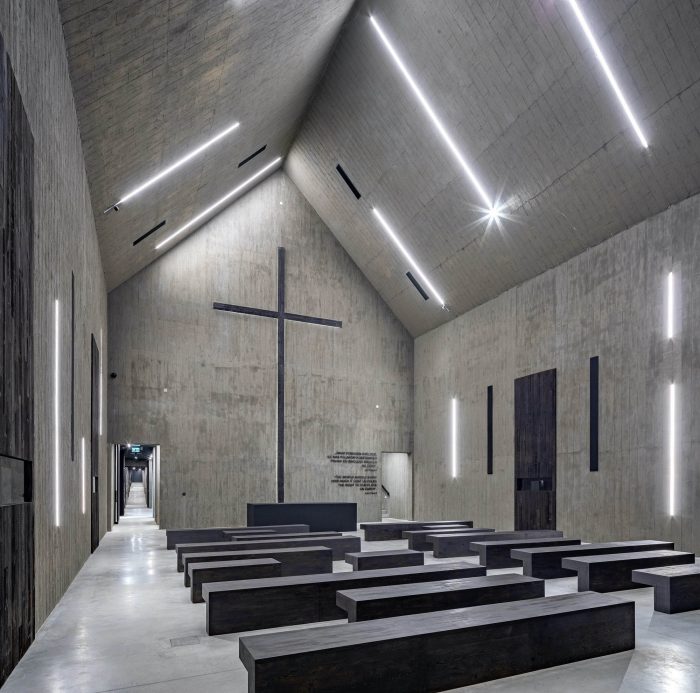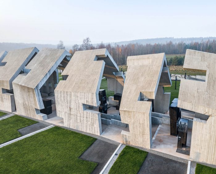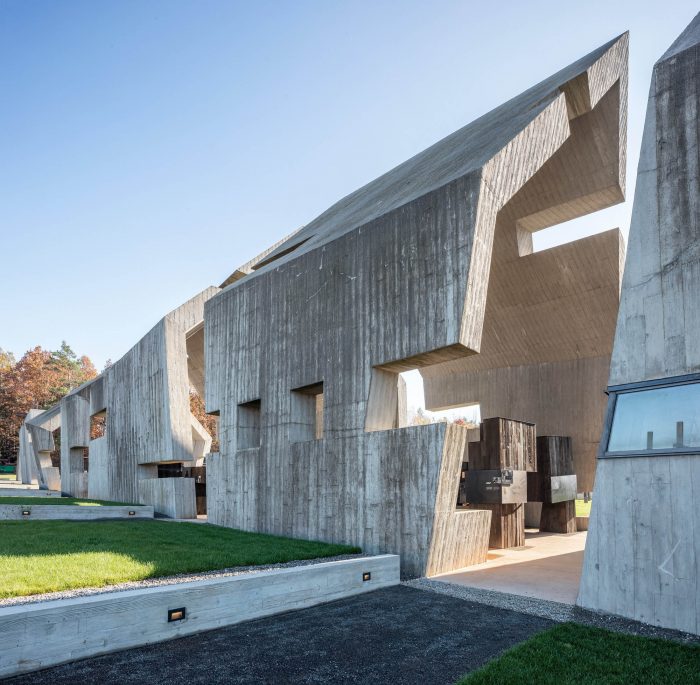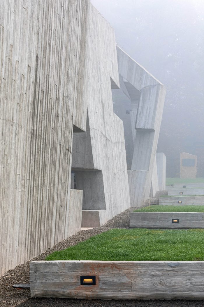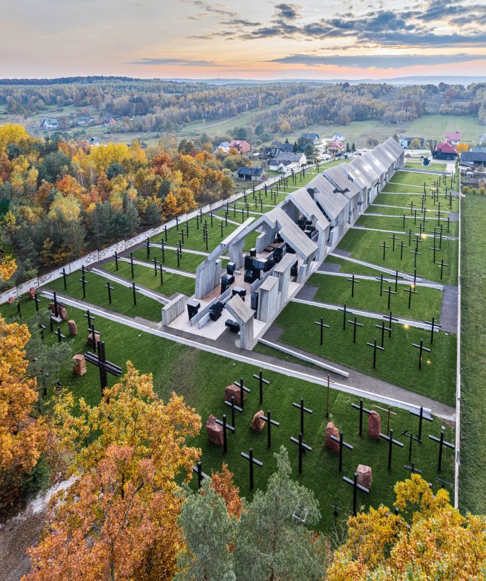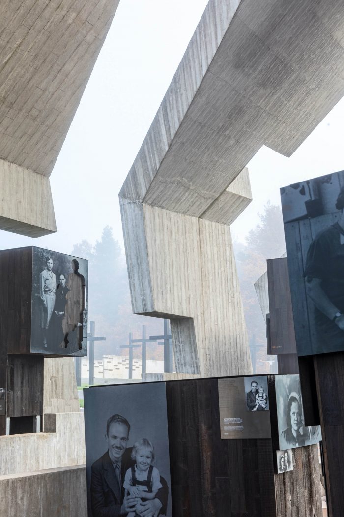 Subsequent segments convey the dramaturgy of the process that has upset a certain “order of the world”: the solid is degraded, destroyed, as in the aftermath of a fire. The concrete structure is marked with fractures, cuts, tears which generate emotions and tension. Both the architecture and the interior of the Mausoleum, as well as the permanent exhibition, are strongly inspired by historical events and the dramatic effects of pacification; they are a symbol of the repression that affected Polish villages during World War II and the Nazi and Soviet occupations.