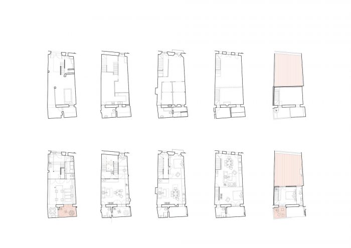 Mediona 13 is the rehabilitation of one of the numerous uninhabited houses of the historical center of Tarragona. The intervention consists in allowing more flexible use of the space, bringing natural light, and preserving as much as possible the existing construction.
