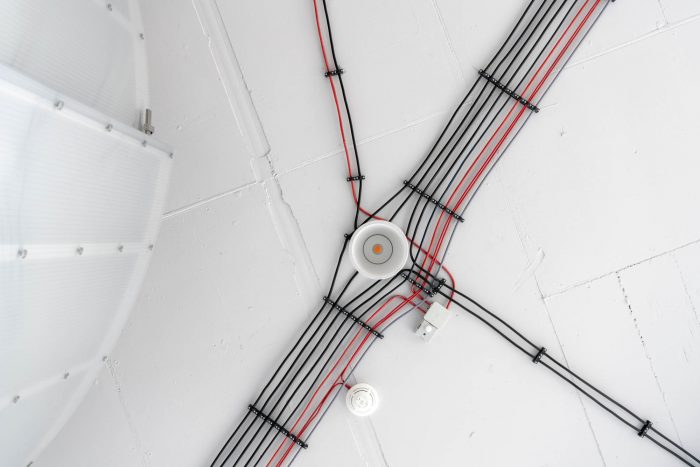 This concept, creating a rough and hard environment with rounded and soft volumes inside, was the intention from the beginning. Simple and color-neutral materials used for tables, floors, and walls together with the approved installations on the ceiling should then make the greatest contribution to this.