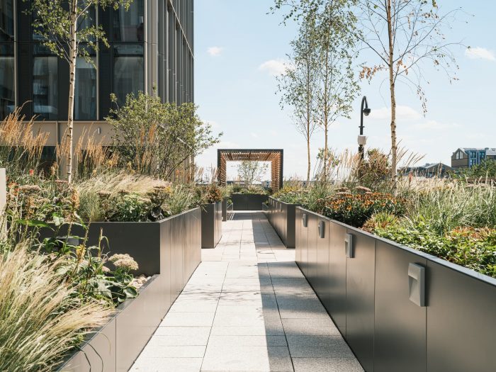 Designed as a 21st-century smart building, data on thermal comfort levels, Co2 and lighting conditions is automatically tracked in real-time through the residents’ app and can be adjusted to meet well-being standards and environmental performance. The technology also allows residents to monitor their energy usage and costs in real-time, encouraging them to minimize these. The building operates 100% on renewable energy from wind, tidal and solar sources. As a long-term operator, Moda Living bulk buys renewable energy for 12 months at a time, passing the cost savings onto its residents.