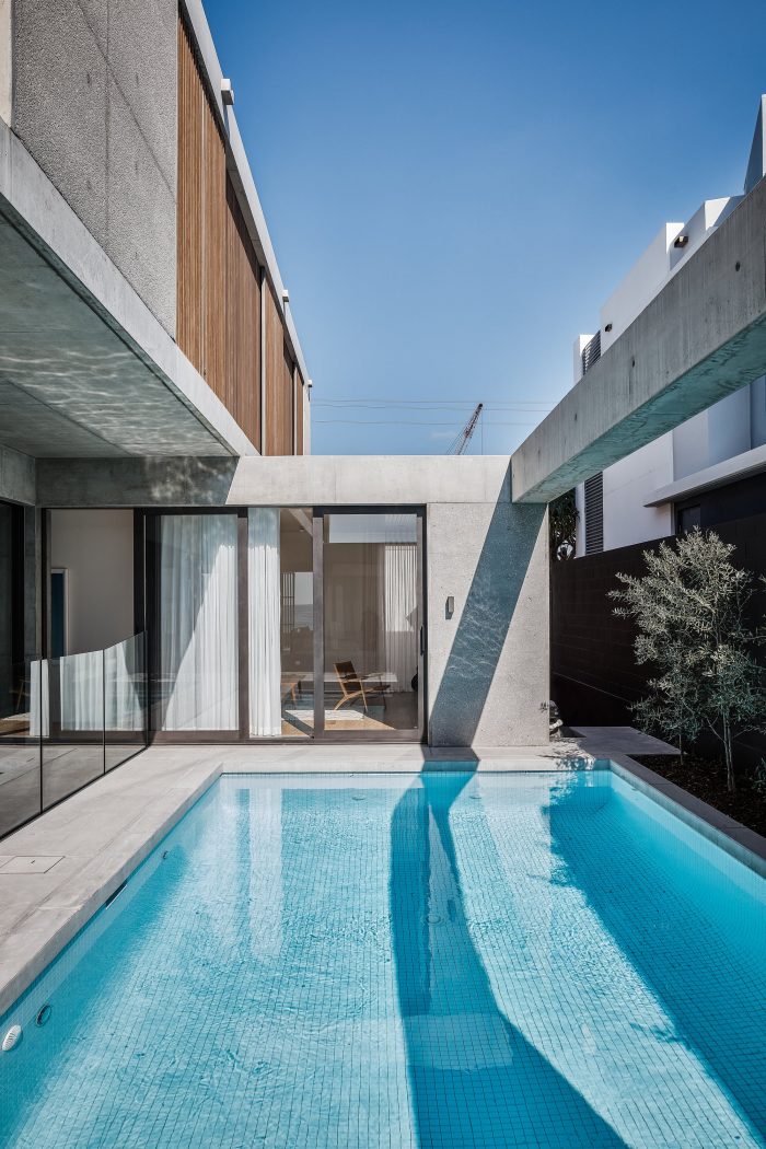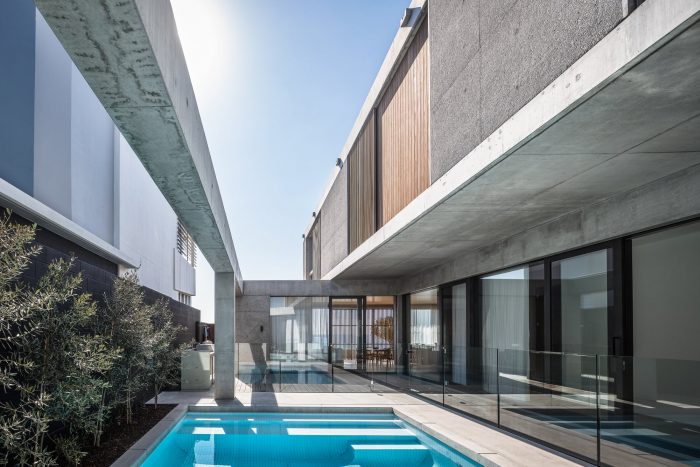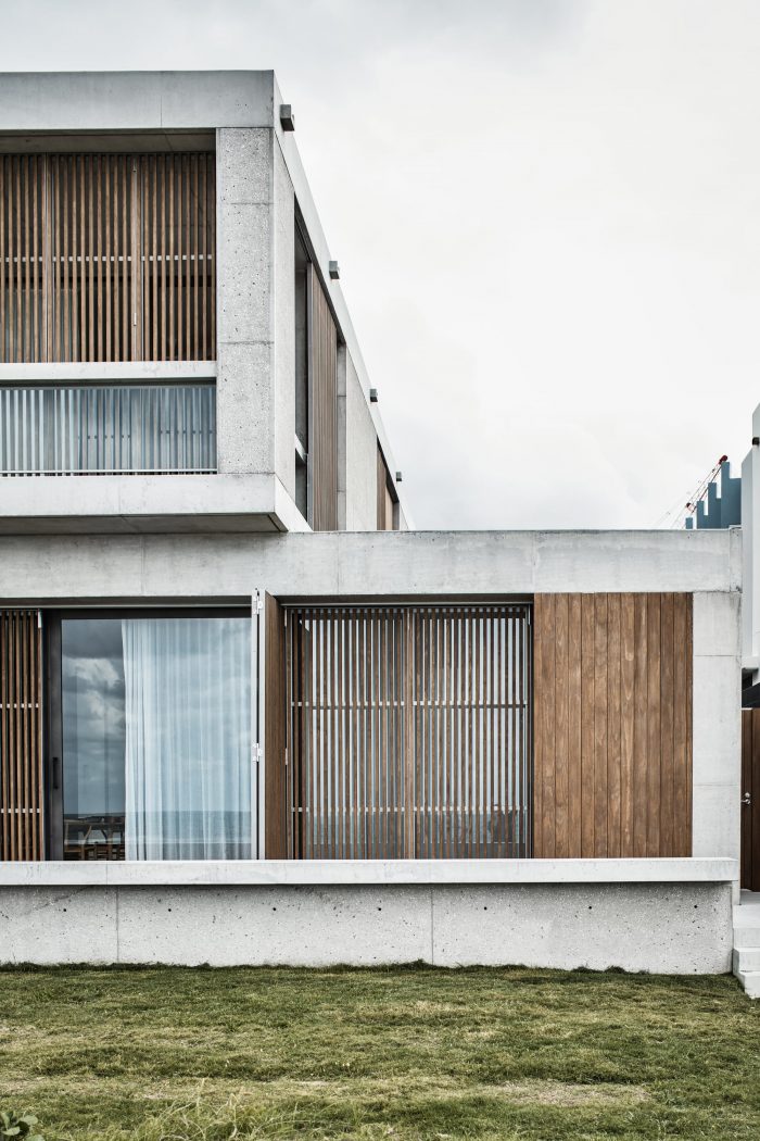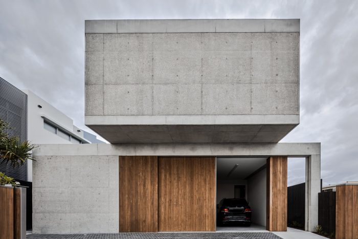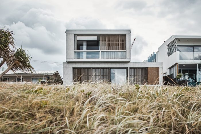 The Mermaid Beach Residence is a new family home positioned along a surf beach in Queensland. Working with clients with a strong appreciation of concrete, the building was designed primarily of exposed concrete internally, as well as externally, with the addition of operable timber shutters on the external windows.