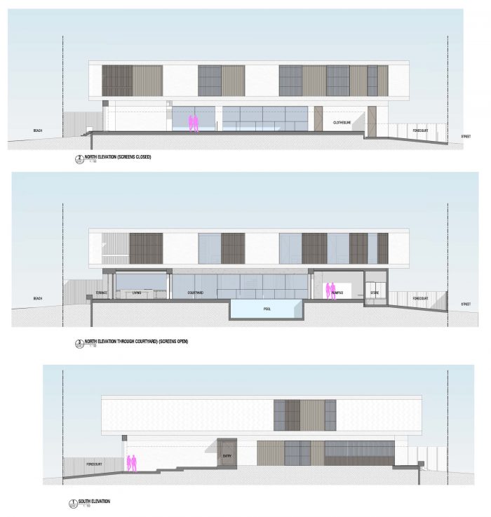 这意味着建筑必须通过提供隐私和保护来应对这些基本的考虑,使其不受经常变化的天气条件的影响,同时又是一个相反的情况;一个轻松、开放、阳光普照的家庭住宅,直接向海滩开放。