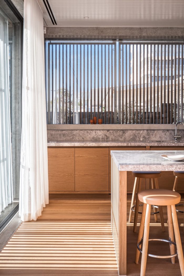 美人鱼海滩住宅是一个新的家庭住宅,位于昆士兰的一个冲浪海滩边。与对混凝土有强烈鉴赏力的客户合作,该建筑主要由内部和外部的裸露混凝土设计,并在外部窗户上增加了可操作的木制百叶窗。