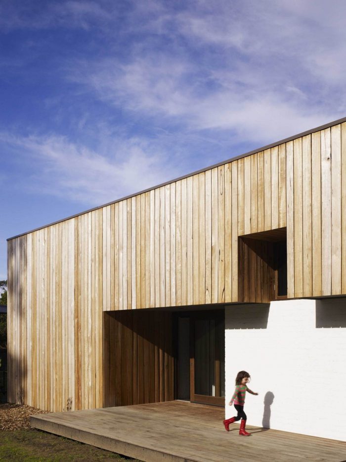 The coastal weekender is not just a summer dream. In winter the hearth is central to this house. Located between the kitchen and living room, a slow combustion fireplace defines another ‘in-between’ space. There is time here in the colder months to pull up a chair, chat or read. In summer this space dissolves into the open corner of the central deck.
