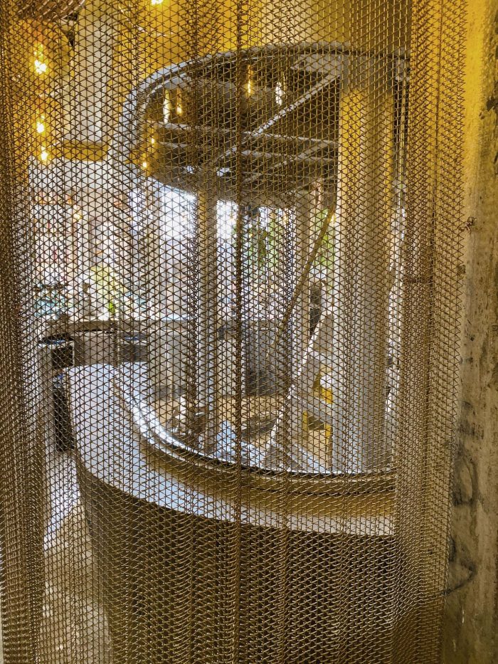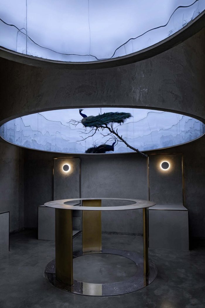 厂区与旧时区用时光隧道相连。当人们进入这条长达11米的未来主义金属管道时,对接下来的好奇心和期待值都会飙升。而到了旧时光区,空间的变化让人有了穿越时空的体验,旧时光区由厨房区改造而成,老房子的屋顶和窗户都被更换翻新。保留原有的墙面和水磨石地面,以营造旧时代的氛围;在主屋窗外庭院之间设置一个小型的吧台柜台,为旧时代区域和艺术空间服务。这个柜台的形状是封闭式的,1/3的柜台位于室外,其余的柜台位于室内。柜台两边打开,作为中间岛,在夏季繁忙的时候连接室外和室内。欢迎顾客围坐在柜台周围,咖啡师可以从任何角度为他们服务。旧时光区的家具是店长丁先生从国外采购的。古典家具带着过去的气息,强化了旧时光的概念。