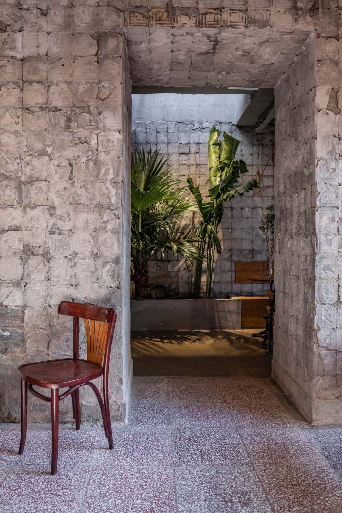 2. The forces of material and time: the marks of old concrete formwork pouring in lobby is clear. Kitchen area, a traditional wood beam structure, has not been properly maintained for years. It desperately needs to be cleaned so that its traditional charm can be rediscovered. The wood columns that have endured years of humidity and invasion of ants, the marks of concrete formwork pouring, the wood roof, the old ceramic tile on the concrete, the old turquoise window, the old terrazzo floor tile, all these elements, as far as we are concerned, are all interconnected, with a special kind of force flowing among each other. They were built, restored, connected and used in different times, all of which lead to how they look and what they are today. After renovation, they merge with the new environment, talking and interacting with each other through the bond stemmed from the time span. This new design seeks to intensify the connection, emphasizing on the passing of time by drawing comparison between different items as well as people’s perception of time generated from the switching among spaces.
