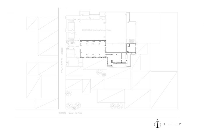 Located at 6, Dongsinanyang Hutong, Dongcheng District, Beijing, the project is renovated by 5L Meet. Originally a rehearsal spot for Beijing Dance Academy of China Performance Group back in 1960s and 1970s, which included a theater, the project site used to be a 300 m2 cafeteria. It has a complicated structure, with both higher frame structure and wood structure tile-roofed house of a Chinese traditional court yard. The project, composed by three spaces with different elevations, leaves much room for an intriguing exploration.