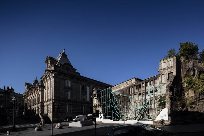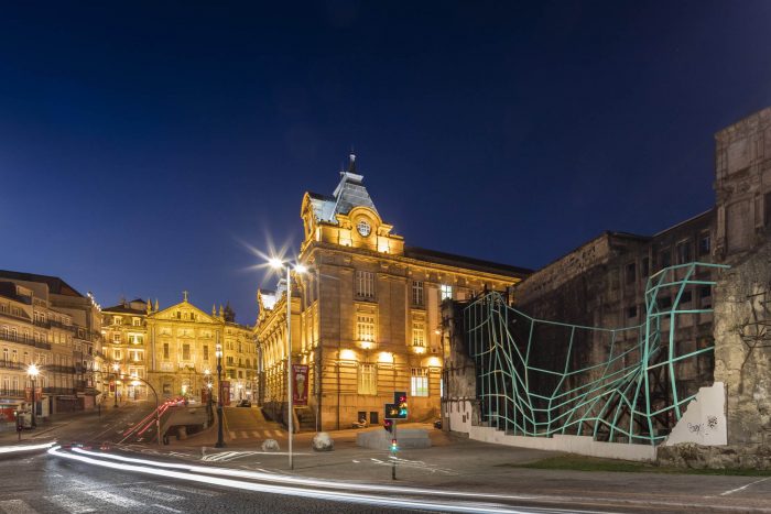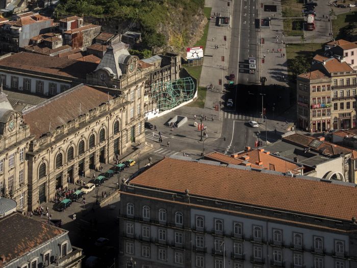 Amid the architectural diversity of one of the most representative areas in Porto, Metamorfose, by creative team FAHR 021.3, stands out. The impact of the green metal mesh filling the void by one of the city’s gateway is undeniable. The result of this intimate dialogue with the city is absolute perfection when bringing together all the elements that make up the area around São Bento train station.