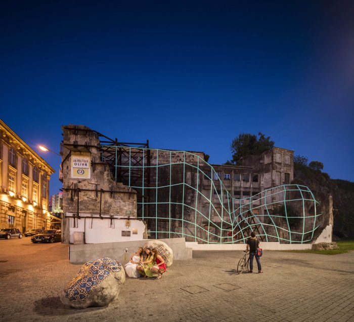 This is the only way Metamorfose would ever make sense for the duo FAHR 021.3. Framed by the Locomotiva initiative, promoted by Porto Lazer, the team present a project that sums up their provocative vision and reflects a new architectural and artistic approach to one of the most characteristic elements in Porto - void spaces. FAHR looks at these spaces, found repeatedly throughout the city, and see possible opportunities for intervention and imagination.
