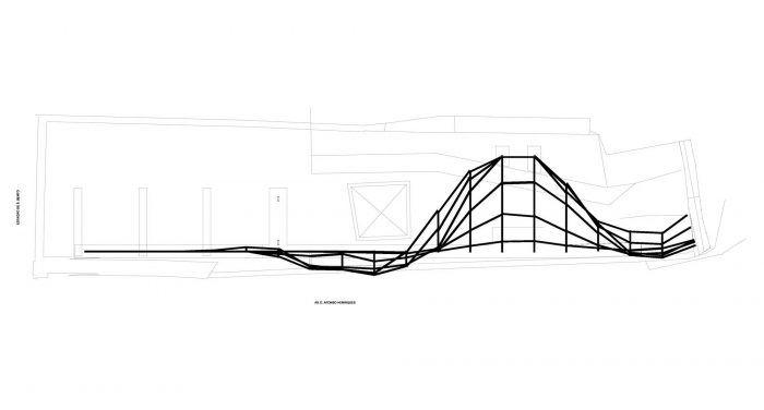 Six tons of steel, 28 metres long, 11 metres high, 5 metres deep and almost 200 intersections, all different – these are data that compose this digitally developed metal mesh. A mesh that finds its physicality in the irregularity that is a by-product of the human hand. In line with the creative team’s philosophy, the plastic gesture, which breaks free from formalisms and rules in construction, in a city centre such as Porto, puts into evidence the intent of provoking and surprising people. The use of colour itself, default in 3D modelling software, is a statement of its challenging essence.