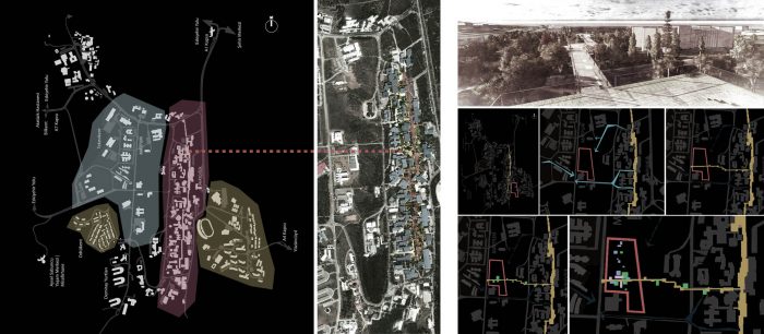 An alley that includes “follies” intended to be used as teahouses or cafés passes over the ring road that separates the techno park from the campus and connects both with the new METU Research Center.