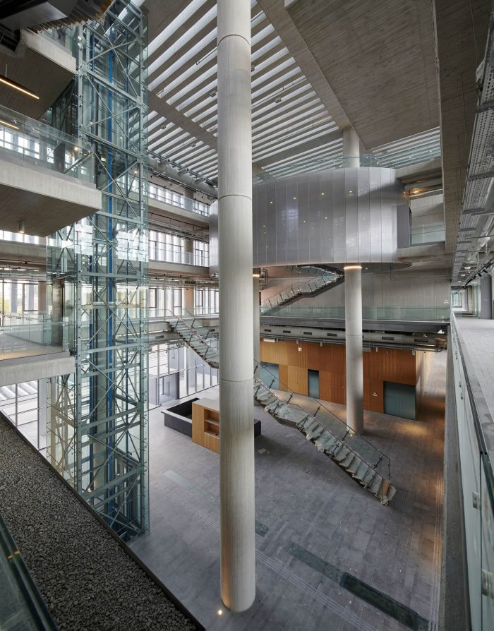 空间中心的中庭是一个会议区。除了研究实验室外,教室、会议室和会议空间也是该项目26,500平方米(285,243平方英尺)的一部分。新的研究中心被设想为一个综合体的一部分,包括大学校园和一个技术园区。