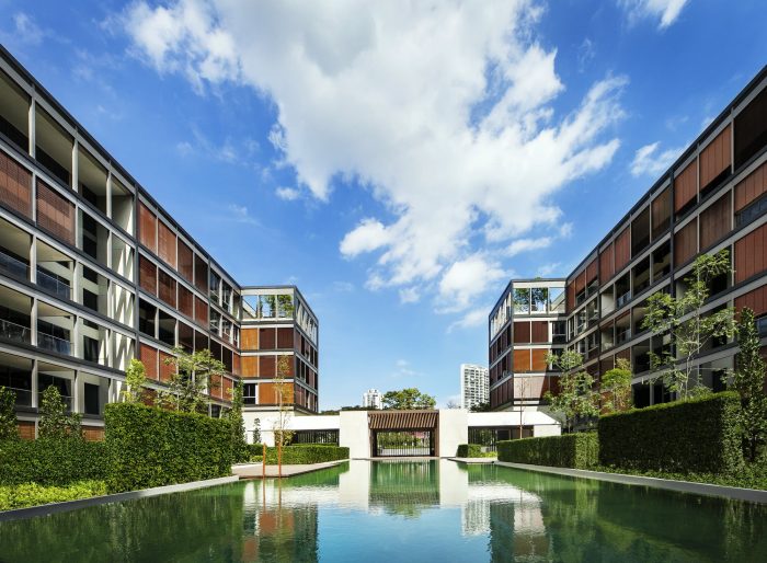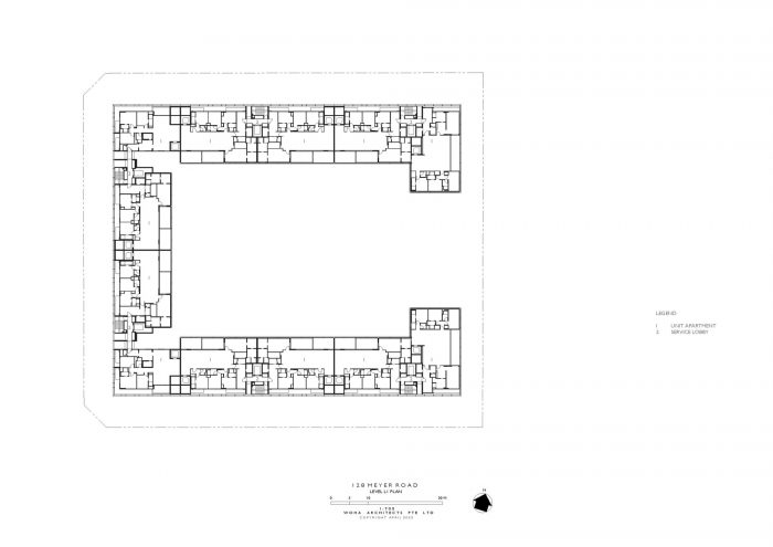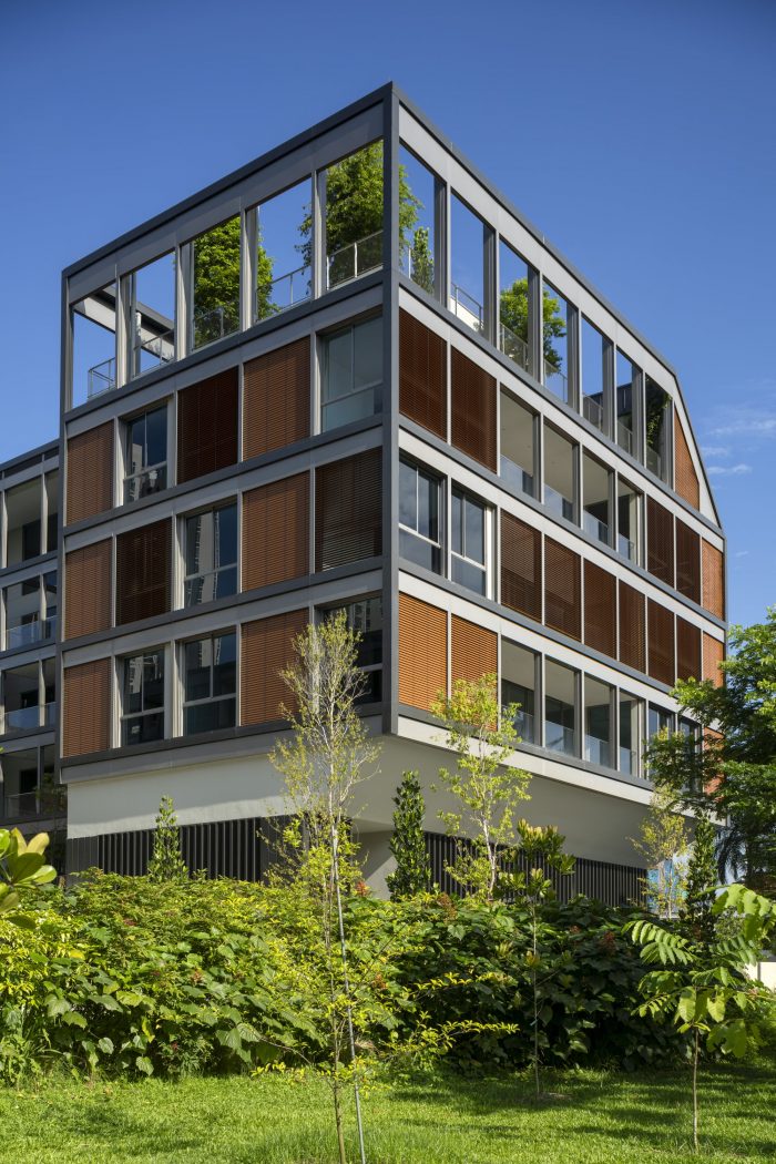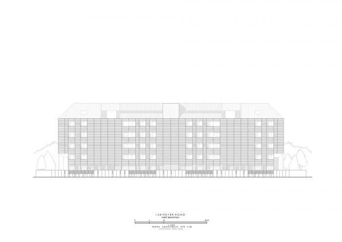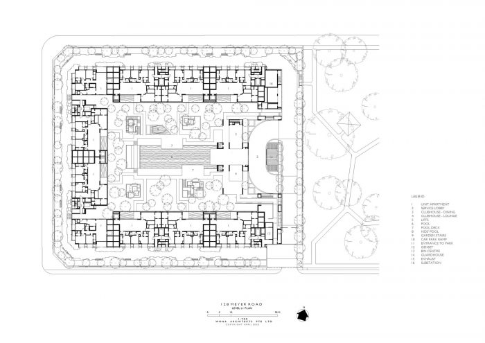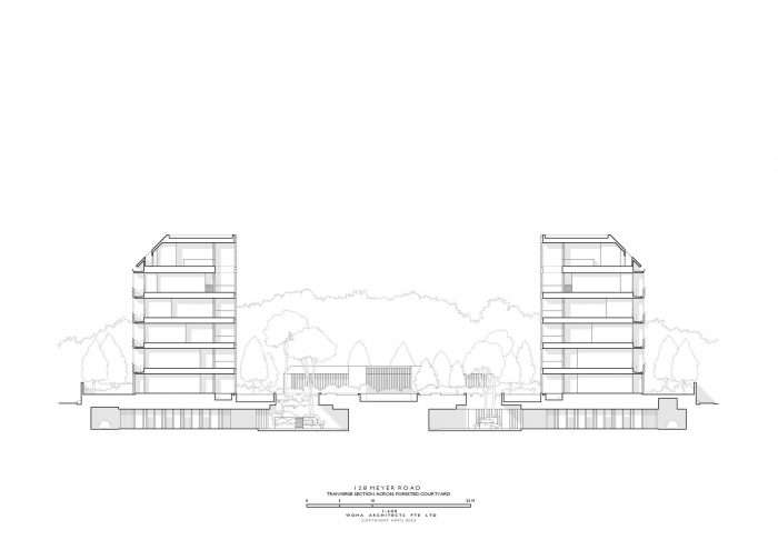 Along Meyer Road, a prestigious address along Singapore’s eastern residential enclaves sits a condominium development housing 56 luxury dwelling units adjacent to a 1-hectare forested park. The 5-storey with attic development is arrayed in a contiguous ‘C’ configuration with residences looking out onto a 50m by 75m internal forested garden that spills out onto the adjacent park.